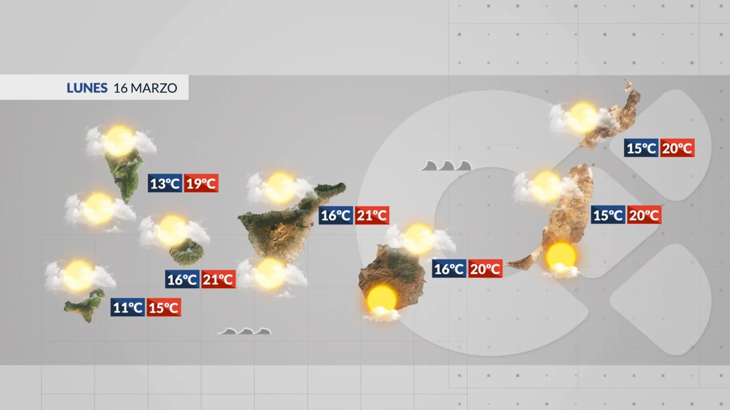 Ce lundi 16 mars, les Îles Canaries connaissent une journée aux ciels changeants, marquée par des passages nuageux plus présents sur les versants nord et est. L’océan Atlantique est animé par une houle venue du nord, demandant une certaine vigilance sur les plages exposées.