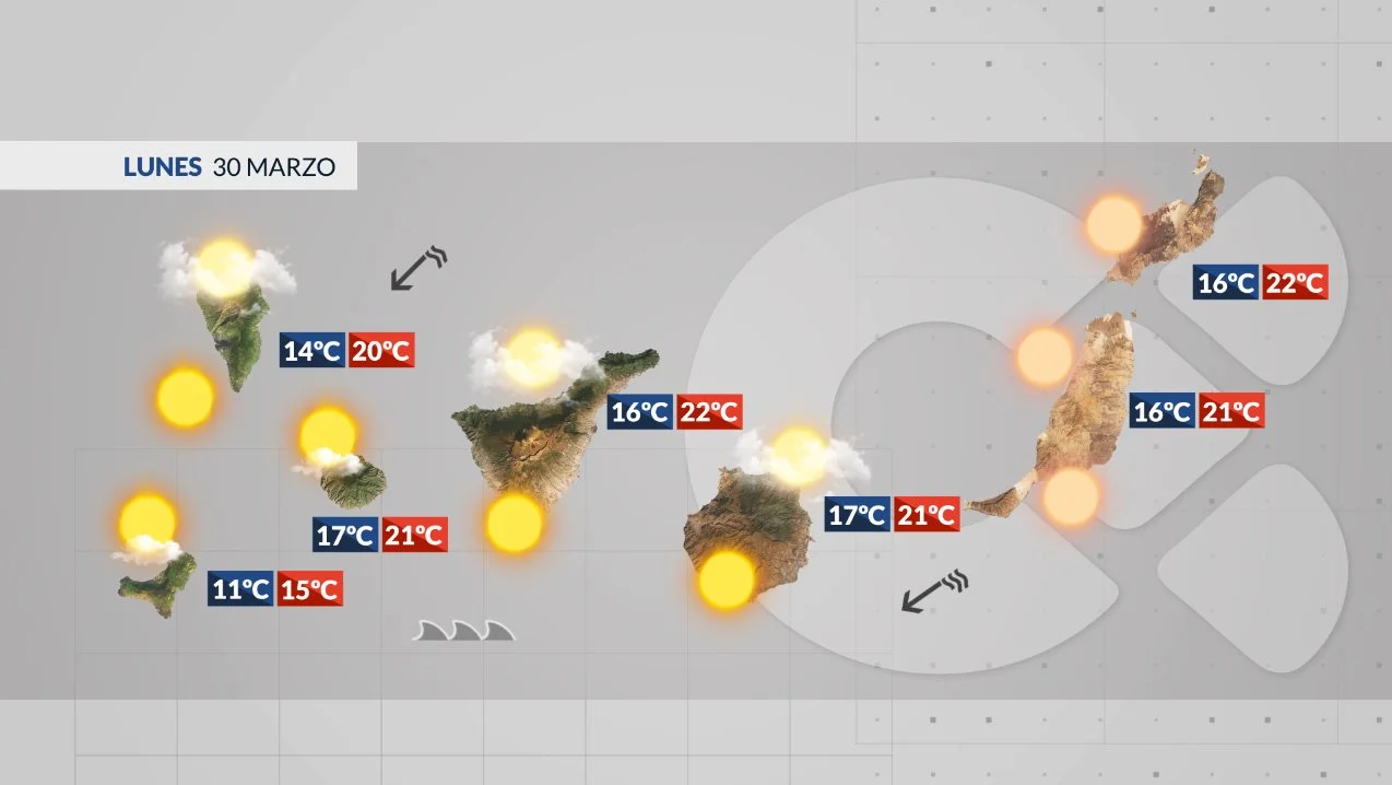 Ce lundi 30 mars, la météo aux Canaries est dominée par trois éléments : un vent alizé parfois intense, l’arrivée de la calima (poussière saharienne) et un état de l’océan Atlantique très agité. Les températures restent stables, avec des maximales comprises entre 18°C et 24°C sur les côtes.