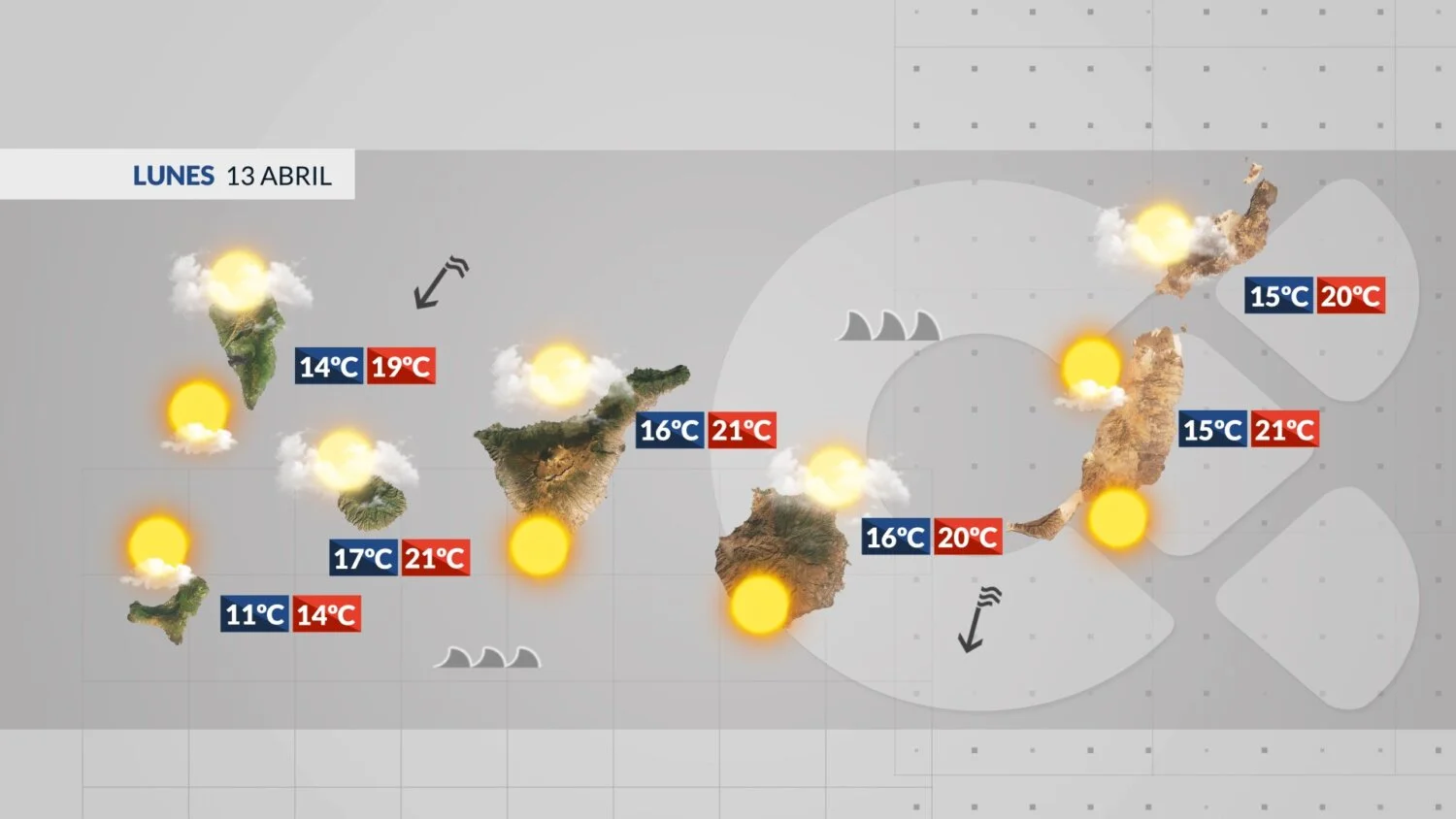 Ce lundi 13 avril 2026, les Îles Canaries font face à une météo agitée, marquée par un vent soutenu et un état de l’océan dégradé. Les précipitations restent très faibles et occasionnelles, limitées aux zones de montagne au nord. L’élément dominant est un vent du nord-est modéré, avec des rafales pouvant dépasser 70 km/h sur les sommets et les côtes exposées. En mer, une houle venue du large génère des vagues pouvant atteindre ou dépasser les 4 mètres sur les façades nord et ouest de l’archipel.