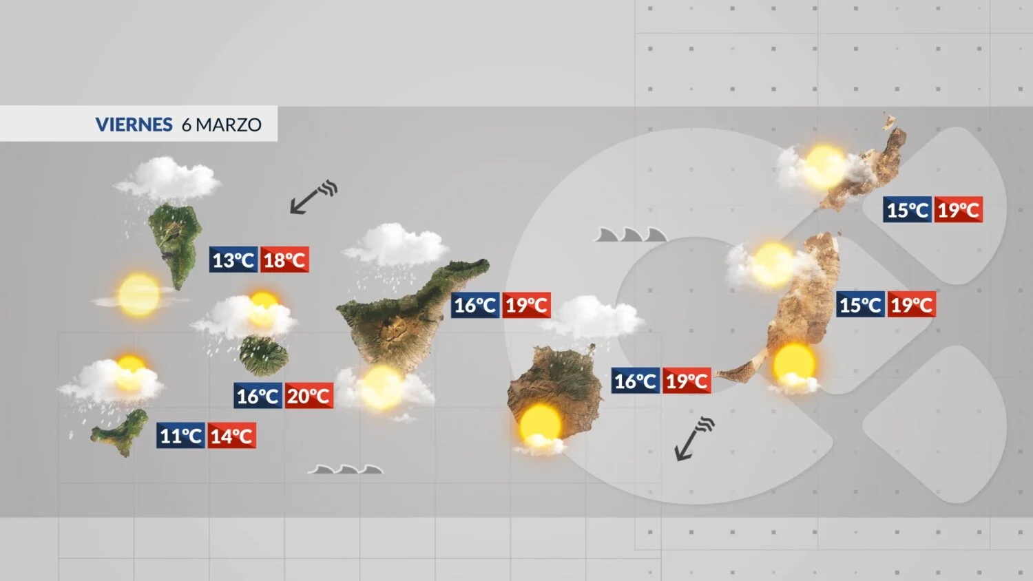 La météo change ce vendredi sur les Îles Canaries. Les restes d’un front actif traversent l’archipel, apportant des précipitations et un vent qui se renforce. La situation devrait s’améliorer en seconde partie de journée, mais le ciel restera souvent grisé par des nuages d’altitude.